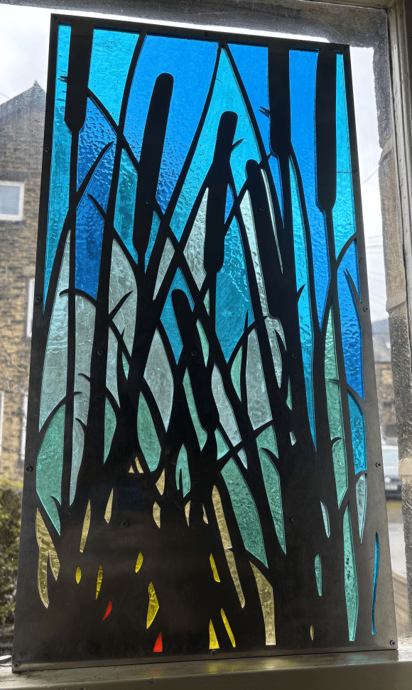 This newly invented technique enables unique window designs using 3 x 3mm laser-cut aluminium sheets to create dynamic silluette frames for fitting traditional hand-crafted coloured glass.